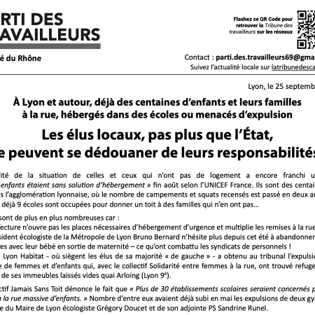 Honte au Maire de Lyon qui continue de rejeter à la rue femmes et enfants !