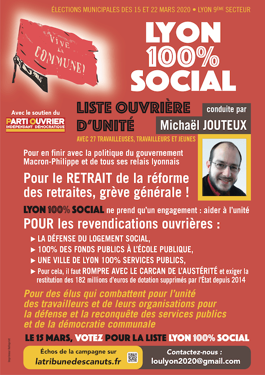 La liste ouvrière d’unité « LYON 100% SOCIAL » conduite par Michaël JOUTEUX, avec 27 travailleuses, travailleurs et jeunes est en campagne :