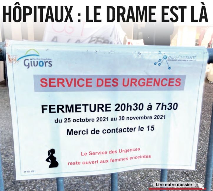 Une pétition circule « CONTRE la fermeture des urgences la nuit et CONTRE la transformation de l’hôpital de Givors », alors que 20% des lits d’hospitalisation y sont actuellement fermés.