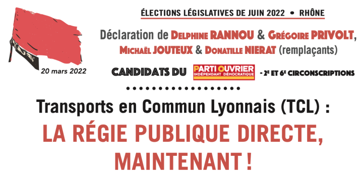 Cliquez pour lire le communiqué du 20 mars des candidats du POID dans les 2e et 6e circonscription du Rhône pour une régie publique directe des TCL, maintenant !