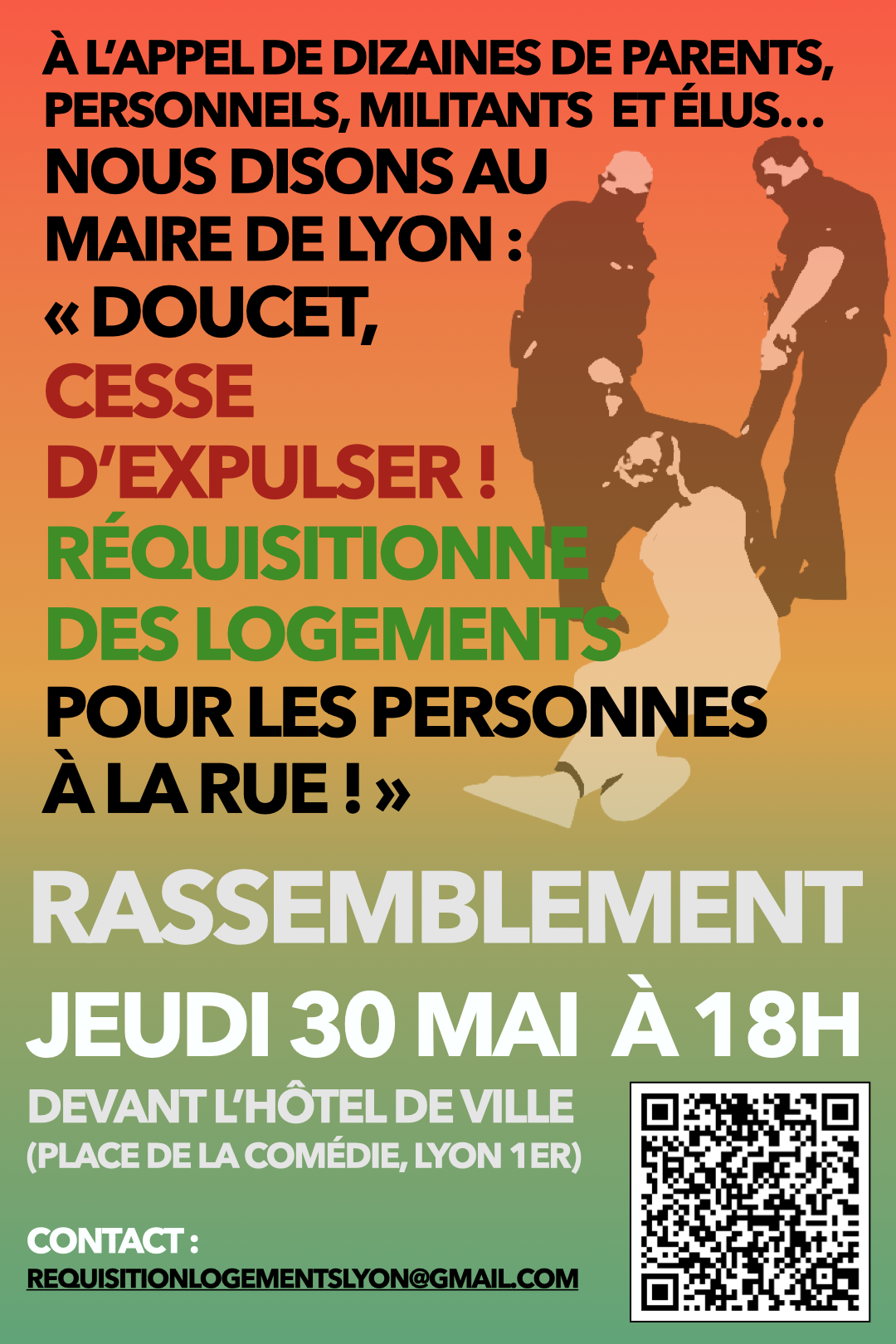 Ils invitent à se rassembler ce jeudi 30 mai à 18h devant l’Hôtel de Ville de Lyon (Place de la Comédie – Métro A “Hôtel de Ville – Louis Pradel“ ) au soir du Conseil municipal